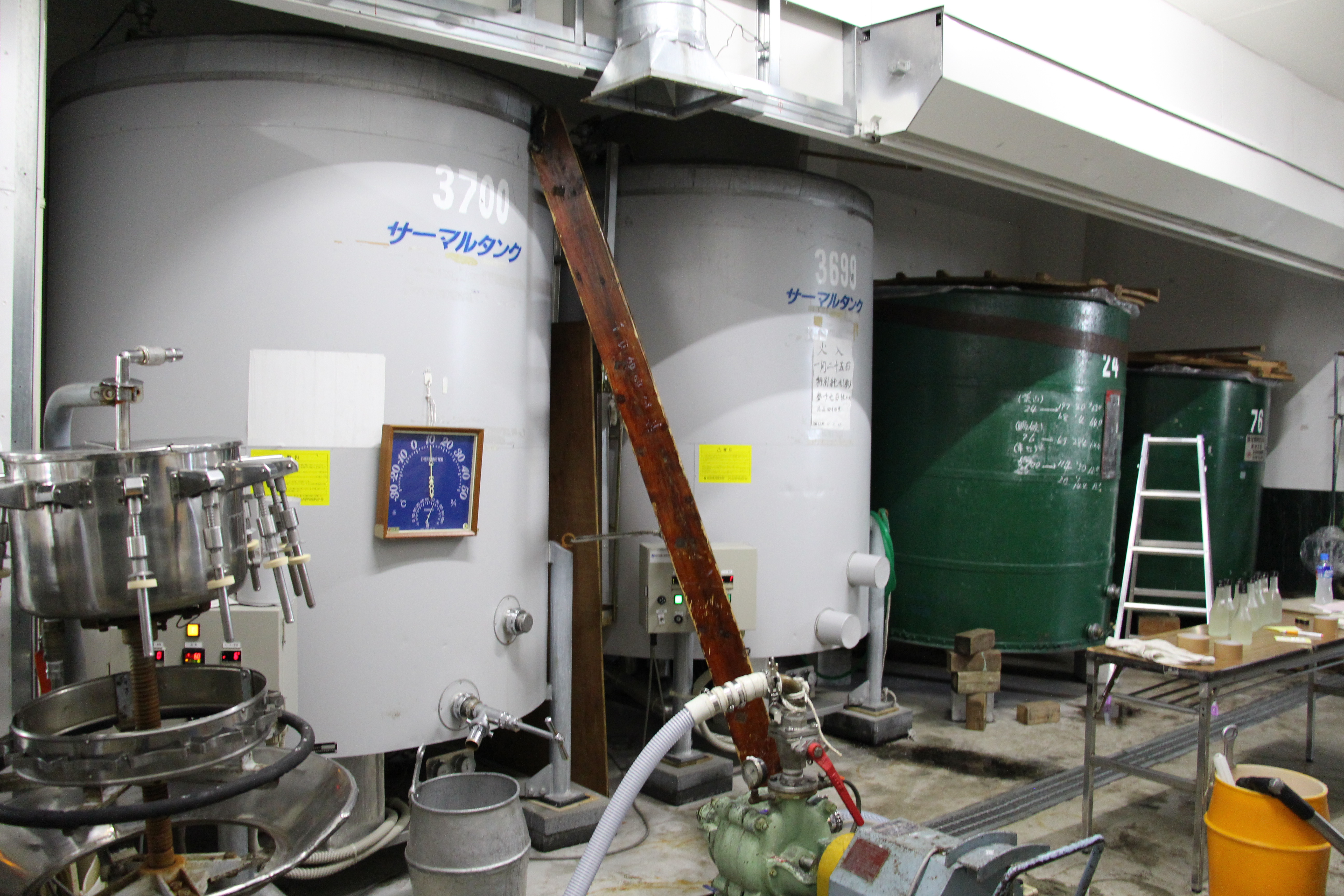 白壁のシンプルな蔵を前に山口佳男社長はそう話してくれました。中の広さは60坪ほど。そこから事務所スペースや製品置き場を差し引いた約45坪で「会州一」は醸されています。蔵人は季節ごとの手伝いを除けば、山口社長と奥様のゆり子さん、杜氏の櫻井光治さんらわずか4名。造られるお酒の本数も限られ、さらに内9割は福島県内でしか出回らないと言いますから“幻の酒”と呼ばれるのもうなずけます。