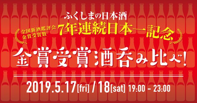 郡山市で営業中のローカルスナック「SHOKU SHOKU FUKUSHIMA」にて7年連続金賞受賞日本一を記念して、金賞受賞酒飲み比べ会を実施!!皆さんと一緒に快挙を祝いましょう!!