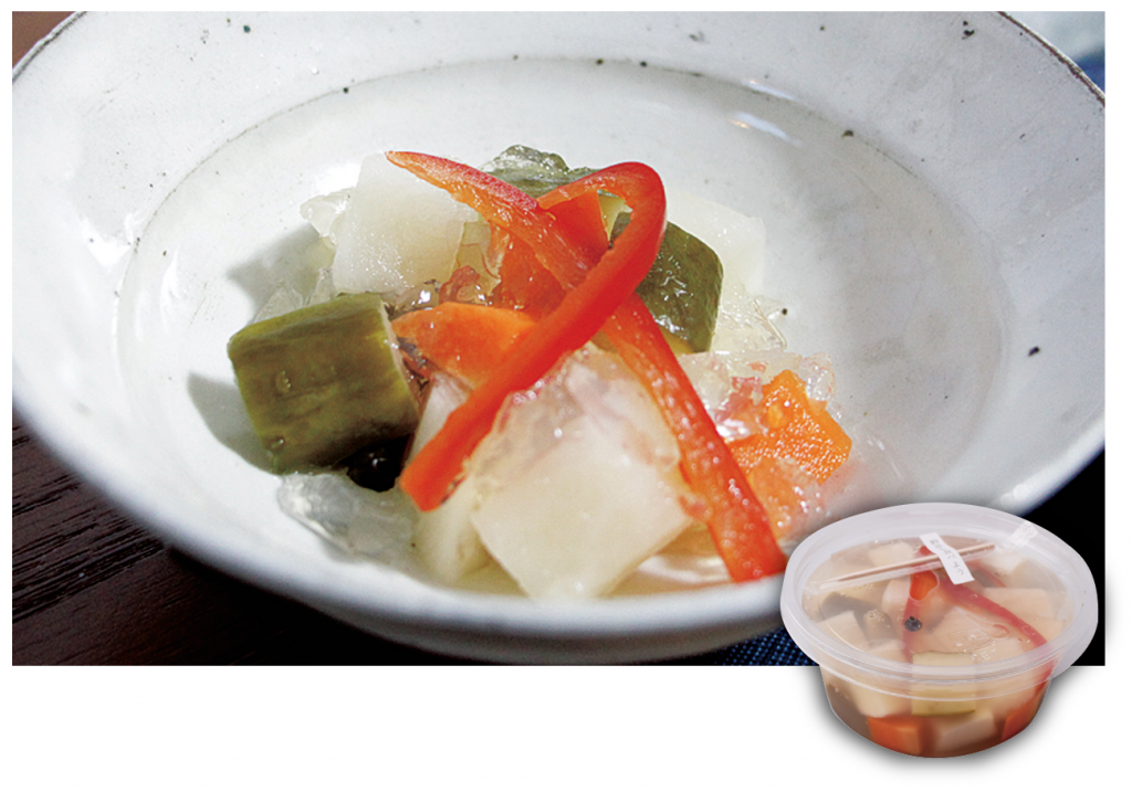 米酢と白ワインをブレンドした特製ジュレに漬け込みました。