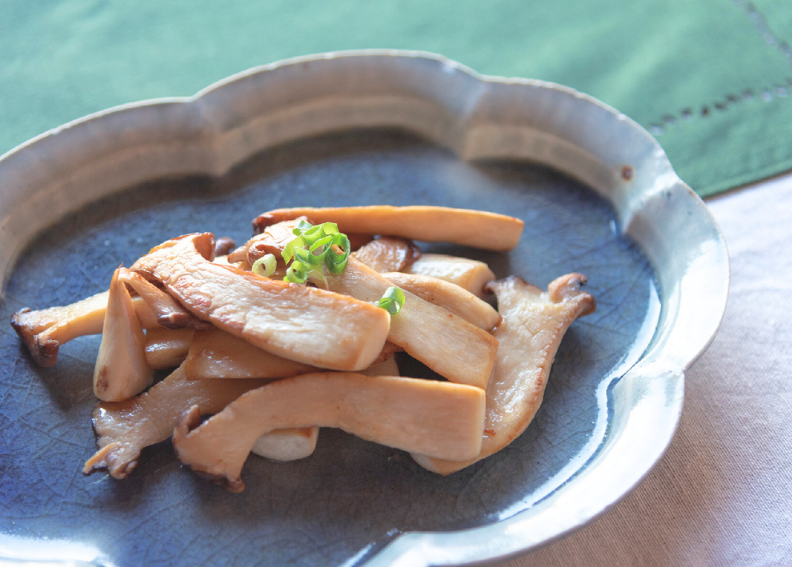 味噌の風味がしっかり染みたホルモンは、コクがありながらもクセが少なめの一品。ここに、心地良い歯ごたえと豊かな風味が人気の「小川きのこ園のえりんぎ」を合わせていきます。