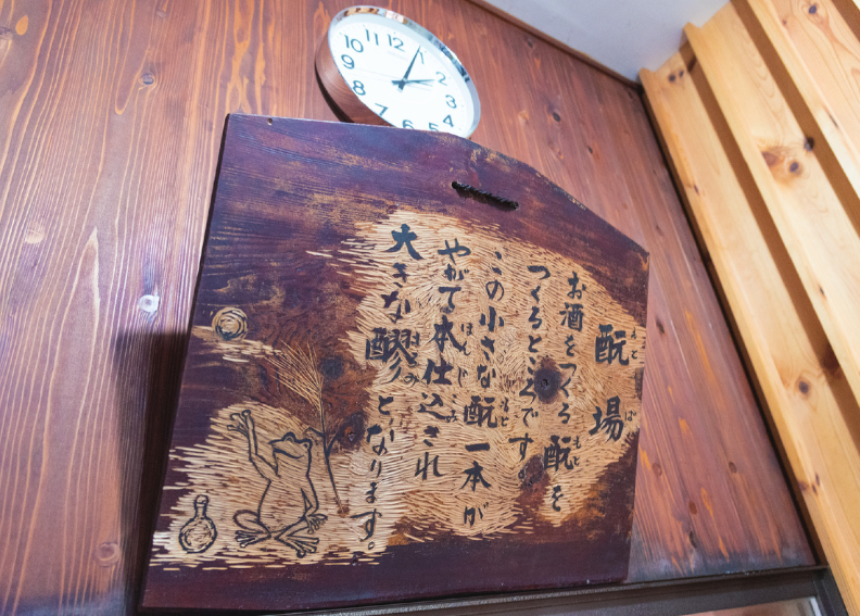 蔵を訪れると、順路を示す看板には可愛らしいカエルが。